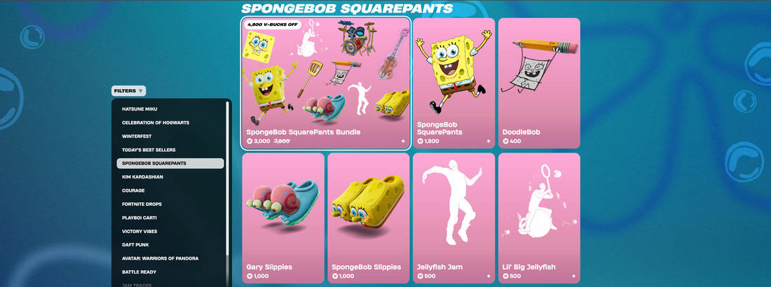 فروشگاه بازی اکنون میزبان آیتمهای متنوعی از جمله کولهپشتی باب اسفنجی و کلنگ طلایی معروف او است که حس نوستالژی را زنده میکند. طرفداران میتوانند رقص معروف عروس دریایی را نیز خریداری کنند تا لحظات شادی را در بازی رقم بزنند. حضور باب اسفنجی در فورتنایت با آیتمهای جانبی دیگری مانند گیتار گووفی گوبر کامل میشود که برای بخش فستیوال بازی طراحی شده است.